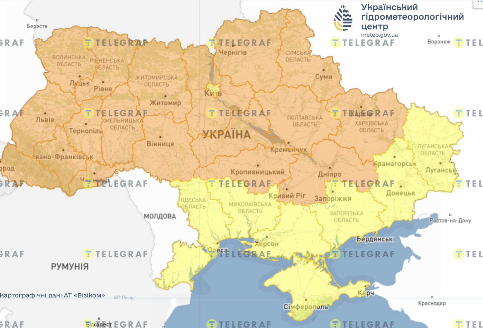 "Вночі 27 та 28 квітня в повітрі заморозки 0-3° (II рівень небезпечності, помаранчевий); на півдні, 27 квітня і на південному сході країни на поверхні ґрунту заморозки 0-5° (I рівень небезпечності, жовтий)", — йдеться у повідомленні.