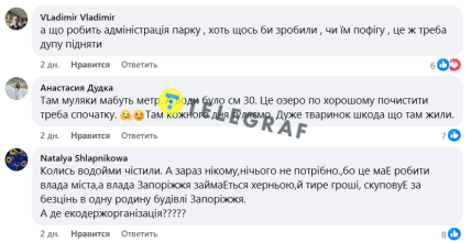 У парку Перемоги в Запоріжжі висохли водойми. Качки ходять по невеличких калюжах, що залишилися від озер. Раніше у цьому місті обміліло озеро в Дубовому гаю, де зокрема живуть лебеді.