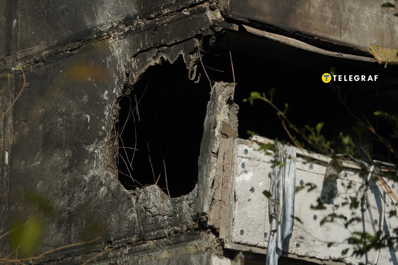 Також на фото можна побачити, що частина багатоповерхівки згоріла.