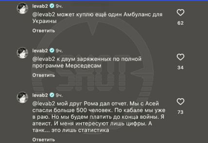 "Може куплю ще один Амбуланс для України. До двох заряджених за повною програмою Мерседесів", — написав тоді музикант.