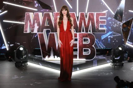Дакота Джонсон, як завжди, притягує на себе всі погляди завдяки відвертим вбранням та стрункій фігурі. На світських заходах головна героїня фільму "Мадам павутина" завжди з’являється в яскравих та стильних образах. Цього разу вона обрала сукню з глибоким декольте для червоної доріжки.