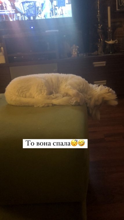 Артист поділився і іншим кадром, де видно, як Кася спить, опустивши голову вниз.