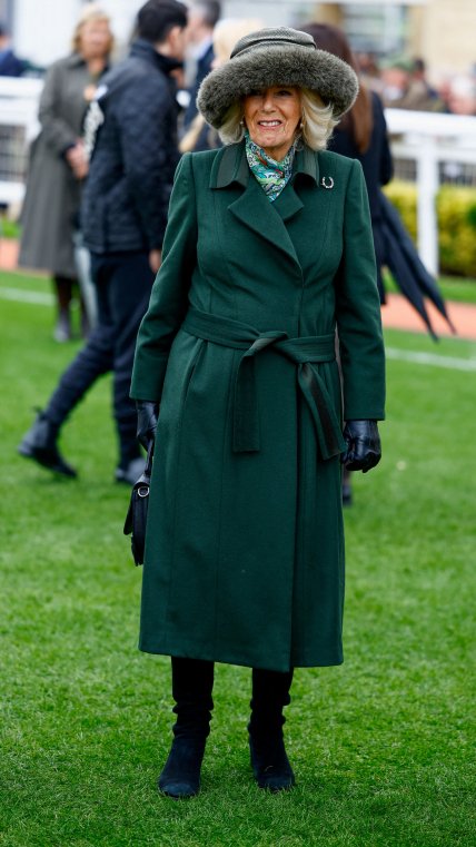 У середу, 13 березня, королева-консорт продемонструвала своє почуття стилю, коли відвідала щорічні перегони на фестивалі у Глостерширі. Камілла вибрала для виходу у світ елегантне зелене пальто від англійського дизайнера Anna Valentine, капелюх зі штучним хутряним оздобленням від Lock & Co, що підходить за стилем, і замшеві черевики.