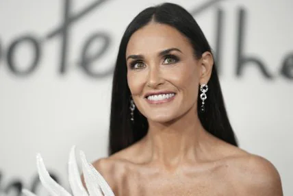 Свій образ Демі Мур доповнила елегантними чорними босоніжками на шпильці. Її довге волосся було розпущене в акуратній укладці, а на обличчі був легкий макіяж. Судячи з кадрів, зірка була у гарному настрої, багато посміхалася та із задоволенням позувала репортерам.
