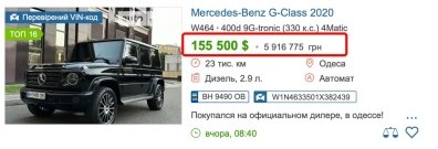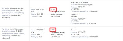 В декларации отмечается, что автомобиль был приобретен в июле 2022 года на имя Алины Левченко. Причем указано, что стоимость автомобиля составляет 10 тысяч гривен. А уже в декабре того же года владельцем Mercedes-Benz G 400 стал сам Торохтий. Похоже, что речь идет о том же автомобиле.