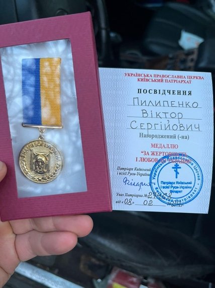 На днях патриарх Филарет УПЦ (Киевского патриархата) отметил медалями за "Жертвенность и любовь к Украине" личный состав медицинского пункта 1-го механизированного батальона 72-й отдельной механизированной бригады ВСУ, в числе которого был и Виктор Пилипенко — открытый гей, совершивший каминг-аут несколько лет назад. Однако, когда священнослужители узнали о его сексуальной ориентации, то отозвали награду.