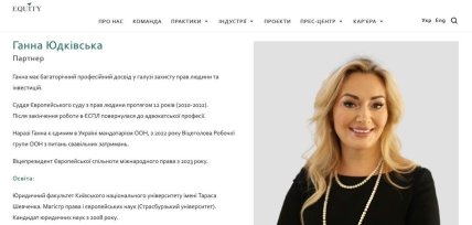 В настоящее время бывший судья ЕСПЧ является партнершей юридической фирмы Equity, той же компании, которая защищает в суде ПАО "Укринком". Эта информация находится в открытом доступе на сайте самой юрфирмы.