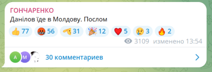 Народный депутат Украины Алексей Гончаренко подтвердил информацию о назначении Данилова послом, но уточнил, что его отправят в Молдову.