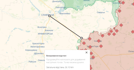 Отметим, что расстояние от Славянска до фронта менее 30 км, а именно 26,10 км.