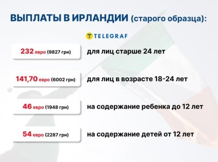 Выплаты на детей здесь составляют от 114 евро (4828 грн) до 165 евро (6989 грн) в месяц в зависимости от возраста. Родителям детей с особыми потребностями выплачивается дополнительная помощь в размере 155,9 евро (6603 грн) в месяц.
