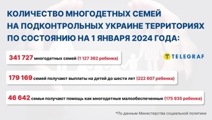 Кроме того, во время полномасштабной войны представительство Детского фонда ООН в Украине (ЮНИСЕФ) ввело программу временной поддержки на всей территории Украины без привязки к статусу переселенца (ВПЛ) для многодетных семей, которые:
