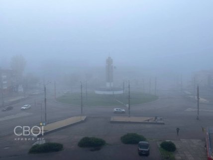 В Кривом Роге влажность воздуха находится на отметке 97%. На фото видно, как туман опустился на город и снизил видимость объектов даже на коротком расстоянии.