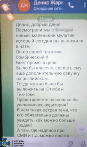 В этой группе состояли специалисты о видеоконтенту. Они обустроили подпольную студию в собственном доме Киевской области и изготавливали заказные анимационные ролики. Далее они присылали их куратору из РФ, которым оказался Денис Жарких – бывший ведущий на каналах Медведчука, а сейчас директор его организации "Другая Украина" в Москве. Далее он давал разрешение на распространение этих видео в сети.