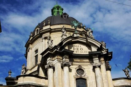 От дворика на Армянской отправляемся в Доминиканскую церковь. Сейчас это действующая греко-католическая церковь Святой Евхаристии. Одна из версий историков — монастырь и костел доминиканцев соорудили на месте старого православного храма свв. Петра и Павла. Свидетельства этому датированы XVII ст.