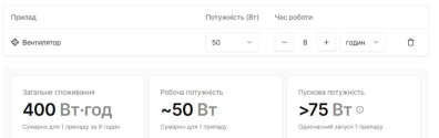 Мы рассчитали, что вентилятор "съест" 400 Вт.ч. за 8 часов.