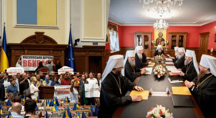 Народные депутаты сообщили, что в "Слуге народа" (СН) отказались вносить в повестку дня законопроект о запрете деятельности религиозных организаций, связанных с Россией.