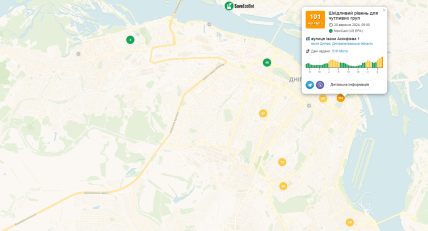 Такие данные приводит мониторинговый портал SaveEcoBot. Наиболее сильный уровень загрязнения фиксируется в центральном районе Днепра.