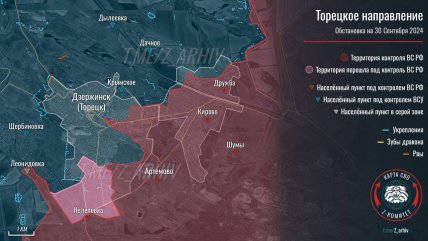 Российские паблики со ссылкой на минобороны РФ сообщают о полном захвате села Нелеповка на Торецком направлении. На российских картах село отображается соответственно.