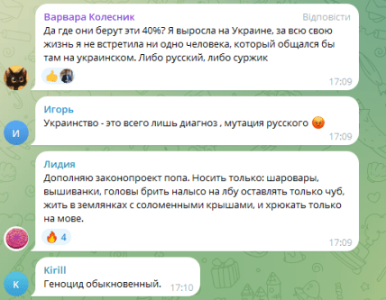 Как видим, для подписчиков паблика RT не существует ни украинского языка, ни украинцев как нации. Абсолютное большинство комментариев обесценивает само понятие Украины и украинской культуры, что, будем откровенны, никак не удивляет.
