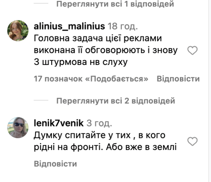 В сети украинцы возмущены этим маркетинговым ходом и считают его неуместным. Такое же мнение высказала и журналистка, блогер и руководительница "Дикого театра" Ярослава Кравченко в Instagram.