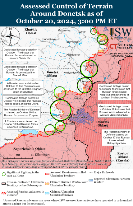 Продолжается 971-й день войны с Россией. За прошедшие сутки, 20 октября, россияне могли захватить еще один населенный пункт Покровского района, Донецкой области. Также россияне преуспевают в селах Курской области.