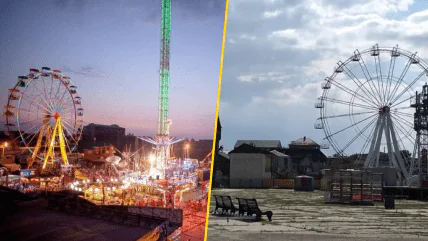 На кадрах также видно хорошо известное всем отдыхающим в Кирилловке колесо обозрения. Оно также находится в не лучшем состоянии.