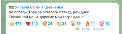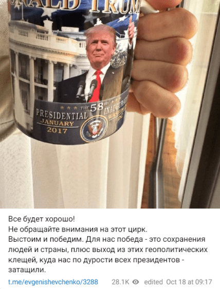 Впрочем, Шевченко и не скрывает своих политических предпочтений среди кандидатов в президенты США. Он регулярно выражает их в своем Telegram, считая дни до того, как Трамп якобы станет президентом США.