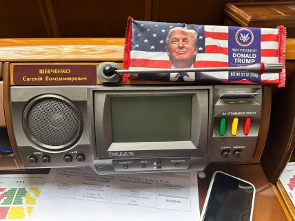 Скандальный народный депутат Евгений Шевченко, выступающий за переговоры с Россией, опубликовал фото своего рабочего места в Верховной Раде. Он "украсил" его батончиком с предвыборной рекламой кандидата в президенты США Дональда Трампа.