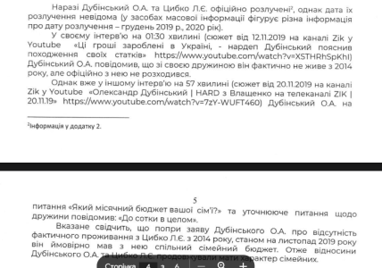 Сам Дубинский сначала утверждал, что с 2014 года не живет с Цибко, однако позже в 2019 году в одном из своих интервью проговорился о "семейном бюджете", чем подтвердил, что продолжает поддерживать семейные отношения с женой. А значит должен был внести ее в свою декларацию.