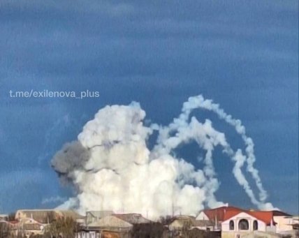 В соцсетях появилась информация о том, что жители Симферопольского района в Крыму слышали серию взрывов, а затем в небе могли наблюдать огромный столб дыма. Предварительно взрывы прогремели в районе села Витино под Евпаторией.