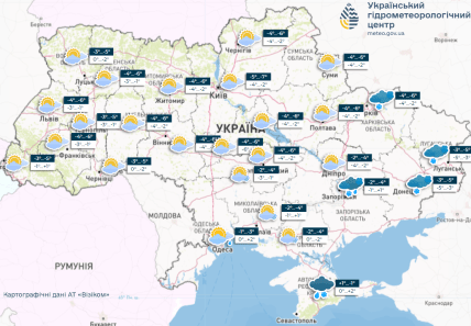 В южных областях будет теплее всего. Также будет облачно с прояснениями, а на Одесщине местами возможен дождь. Показатели термометров днем будут колебаться от -1 до +2 °C. Ночью температура будет находиться в коридоре от -4 до -1 °C.