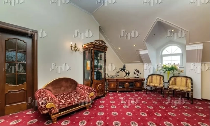 На первом этаже расположен авторский камин, кухня, бассейн, сауна, санузел. Пол уложен испанской плиткой с подогревом. А на втором этаже есть 3 спальни, рабочий кабинет с террасой и санузел.