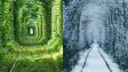 "Тоннель любви" — одна из самых романтичных природных достопримечательностей Украины, расположенная вблизи поселка Клевань в Ровенской области. Зимой это место выглядит по-особому волшебно, превращаясь в заснеженную сказку, привлекающую туристов со всей страны и даже из-за границы.