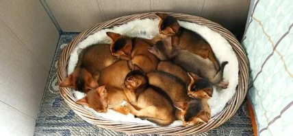 Абиссинцы – кошки среднего размера с худым мускулистым телом. Обычно они весят 3,6-5,4 кг. Шерсть короткая, тонкая и глянцевая с уникальным узором, где на каждой шерстинке чередуются полосы светлого и темного цвета. Очень активные и игривые, любят исследовать новые места и предметы. Их легко научить трюкам, например, ходить в туалет на унитаз.