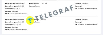 Кроме того, в распоряжении Василенко имеется еще один дом, площадью 62 м2, который она приобрела в 2021 году за 809 тысяч гривен. Он расположен на земельном участке, площадью 150 м2, приобретенном в том же году за 15 тысяч гривен.