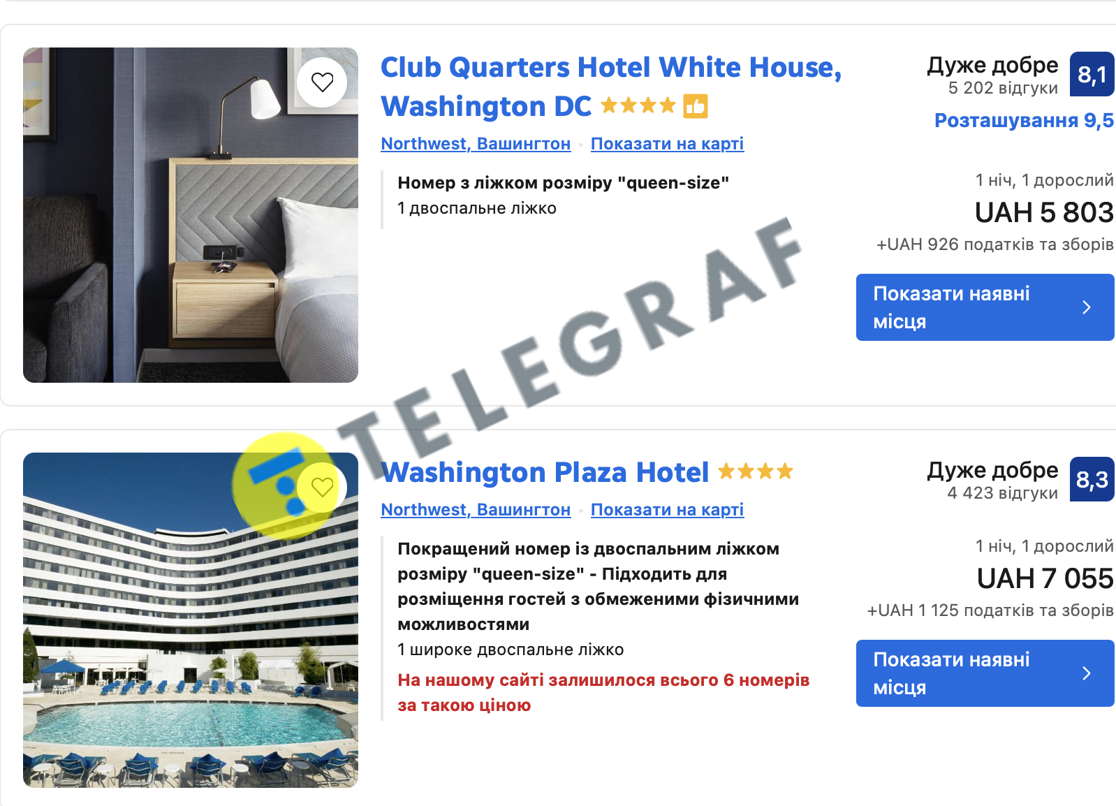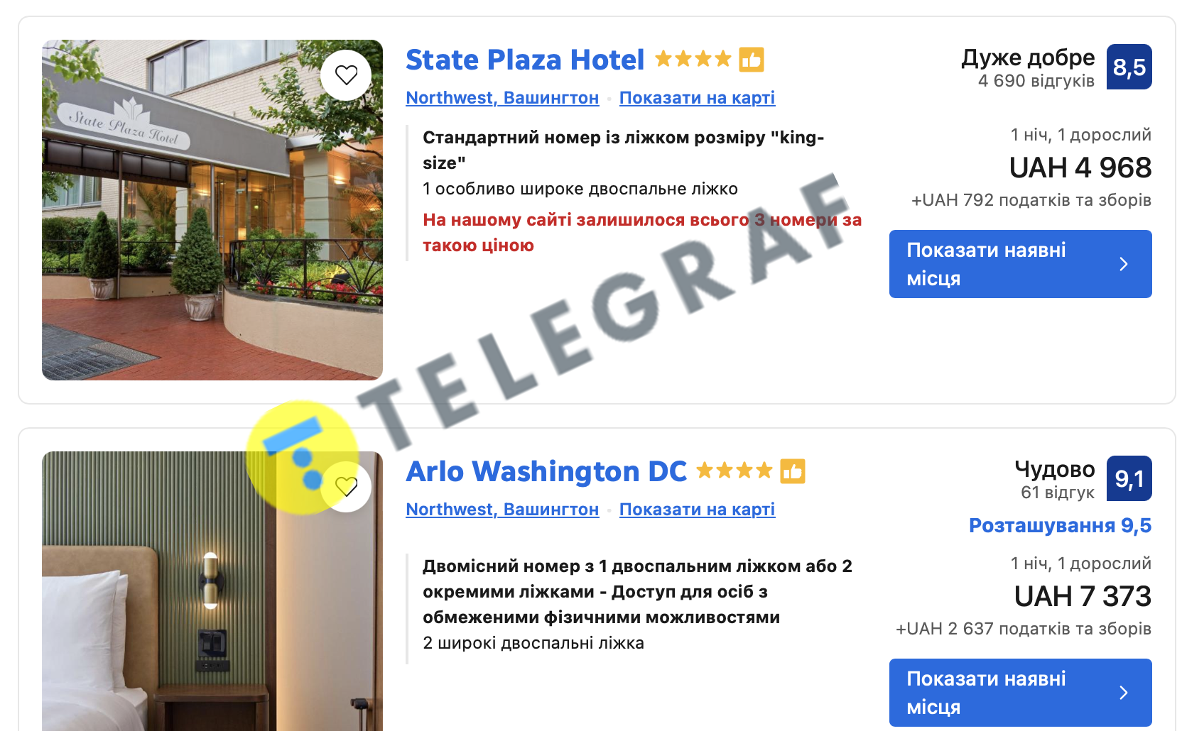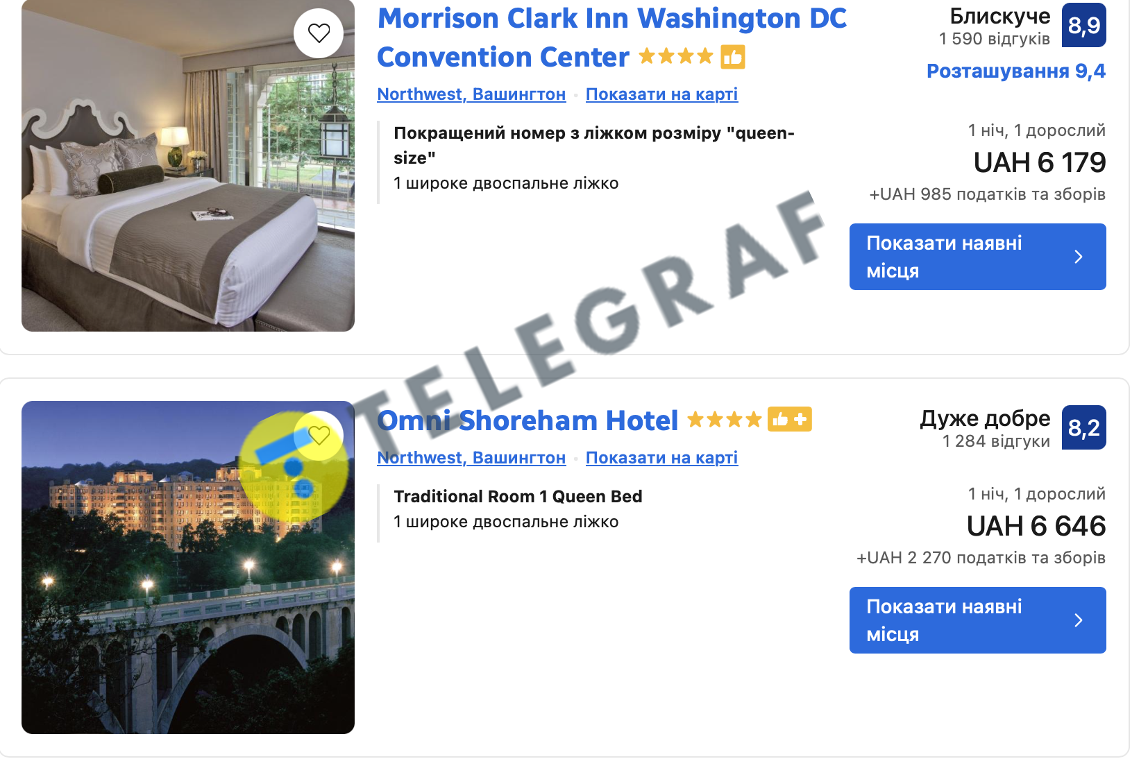Что касается стоимости проживания в отелях, то, по данным сервисов бронирования и наших источников, она в эти дни существенно не отличалась и составляла от 100 долларов за ночлег (по курсу валют 41,9 – почти 4200 грн). В отеле же Hilton, где и проходил Молитвенный завтрак, цена стартует более 10 тысяч грн.