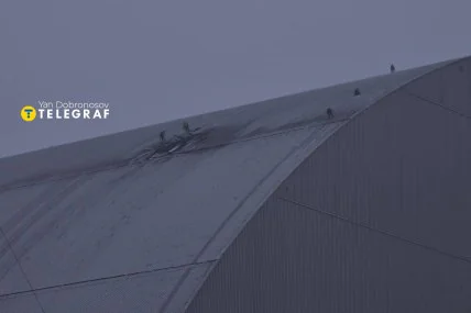 Погода мешает спасателям ликвидировать последствия попадания российского дрона в саркофаг Чернобыльской АЭС. Веревки леденеют, а в снаряжении работать очень сложно.