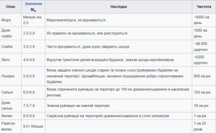 Землетрясения оценивают по 12-балльной системе. От 1 до 5 баллов – почти неощутимое землетрясение, от 5 до 7 баллов – на верхних этажах многоэтажек качаются люстры, от 7 до 9 баллов – по стенам домов возникают трещины, от 9 до 12 баллов – дома разрушаются.
