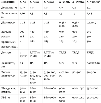 - Х-59М – обновленный вариант Х-59 с более мощной боевой частью, но ограниченной дальностью до 115 километров;