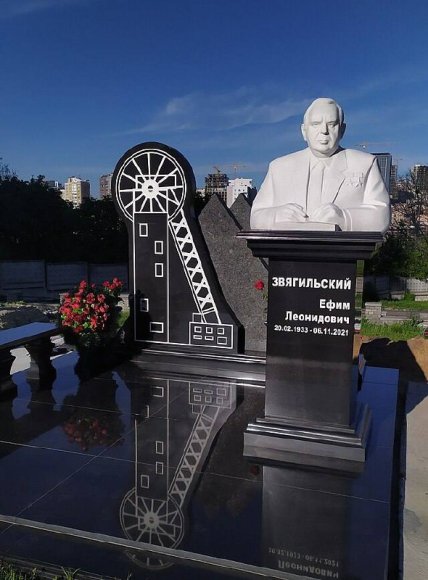 Через некоторое время на надгробной плите еще установили бюст Звягильского, выполненный из белого камня. Таким образом, покойному оформили целый мемориальный комплекс.