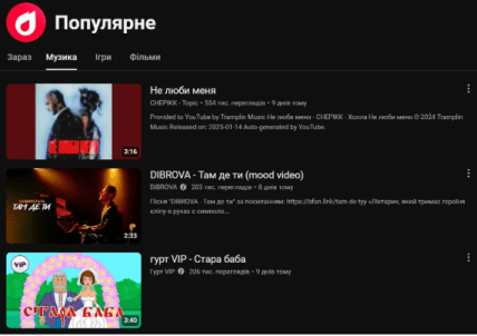 В январе 2025 года российский трек возглавил чарт на YouTube в Украине. Это была песня певицы CHEPIKK – "Не люби меня".