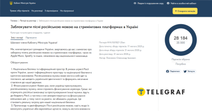 Автор петиции Леонов Александр указывает в тексте, что Кабмину следует запретить песни на русском языке на стриминговых платформах, таких как Apple Music, Spotify и других, независимо от национальности исполнителя.