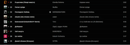 Часто в ТОПах попадаются песни MORGENSHTERN и российского певца Matrang и Рэм Дигги, который с 2014 года выступает на оккупированных Россией территориях Украины и назван автором неофициального гимна ополченцев на Донбассе.