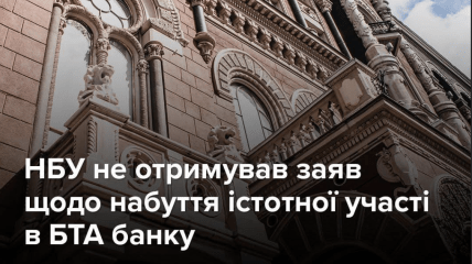 "В настоящее время НБУ не получал заявлений о получении существенного участия в БТА банка, а значит, никаких согласий со стороны регулятора на уровне руководства или на уровне комитета не предоставлялось", — подчеркивает Нацбанк.