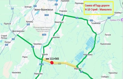 Автотранспорт может двигаться по объезду из села Черниев через села Хриплин или Березовку, а из села Марковцы – через села Хомяковка и Одаи.