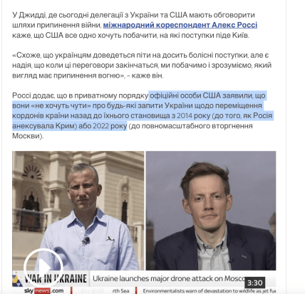Как отметили в Центре противодействия дезинформации (ЦПД), опубликованный материал Sky News об отвержении Штатами возвращения Украины к границам 1991 года неправдив.