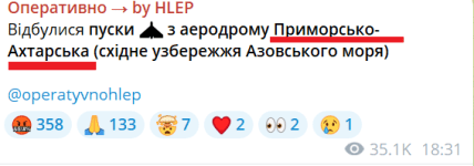 Запуск "Шахедов" с Приморско-Ахтарска по Украине