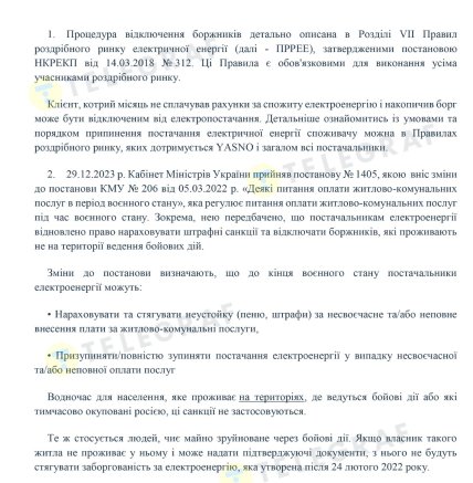 "Изменения в постановление определяют, что к концу военного положения поставщики электроэнергии могут: