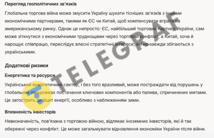 "Телеграф" спросил искусственного интеллекта Grok, как повышение американских пошлин может повлиять на Украину? Искусственный интеллект проанализировал ситуацию и спрогнозировал ряд экономических и политических вызовов для нашего государства.
