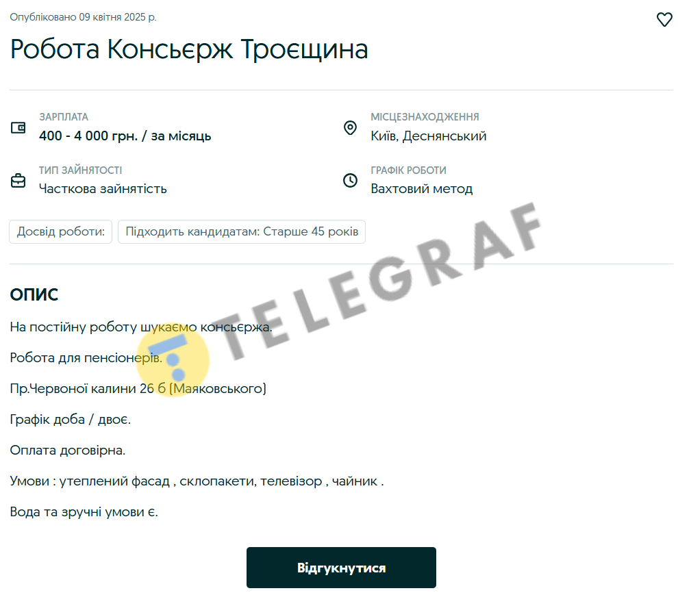 Украинские пенсионеры всегда находят способ оставаться активными и самодостаточными, не теряя желания работать. Для тех, кто ищет стабильную и легкую работу по комфортным условиям, предлагают вакансию консьержа в Киеве, на Троещине.